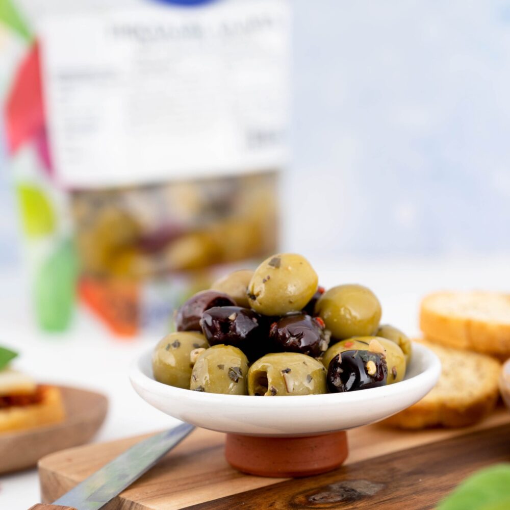 Our marinated olives use the finest blends of herbs and spices. They come to you fresh from our kitchen where they have been carefully packed in a protective atmosphere. So, when kept chilled, their shelf life is up to 4 months.